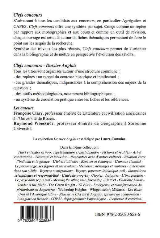 Traitant d’un des sujets 2023 et 2024 du Capes d’Anglais, cet ouvrage propose tout ce dont le candidat a besoin pour passer les épreuves. Comme tous les Clefs-concours “Dossier Anglais”, l’ouvrage est structuré en quatre parties : Introduction et conseils méthodologiques; Repères sur le contexte historique et culturel; Thèmes qui structurent le sujet; Outils (bibliographie, chronologie, glossaire).