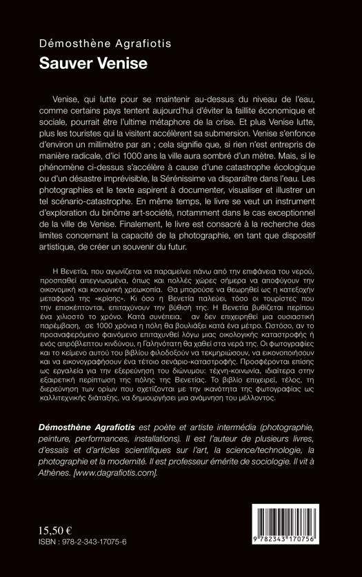 Venise, qui lutte pour se maintenir au-dessus du niveau de l’eau, comme certains pays tentent aujourd’hui d’éviter la faillite économique et sociale, pourrait être l’ultime métaphore de la crise. Et plus Venise lutte, plus les touristes qui la visitent accélèrent sa submersion. Les photographies et le texte aspirent à documenter, visualiser et illustrer un tel scénario-catastrophe. En même temps, le livre se veut un instrument d’exploration du binôme : art-société. Enfin, le livre est consacré à la recherche des limites concernant la capacité de la photographie, en tant que dispositif artistique, de créer un souvenir du futur.