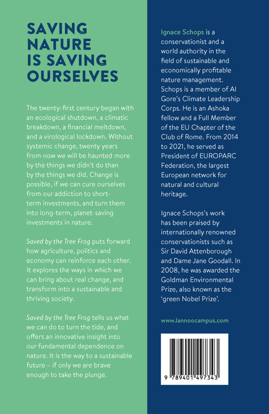 The twenty-first century began with an ecological shutdown, a climatic breakdown, a financial meltdown, and a virological lockdown. Without systemic change, twenty years from now we will be haunted more by the things we didn't do than by the things we did. That change is possible, if we can cure ourselves from our addiction to short-term investments, and turn them into long-term, planet-saving investments in nature. Saved by the Tree Frog puts forward how agriculture, politics and economy can reinforce each other. It explores the ways in which we can bring about real change, and transform into a sustainable and thriving society. Saved by the Tree Frog tells us what we can do to turn the tide, and offers an innovative insight into our fundamental dependence on nature. It is the way to a sustainable future - if only we are brave enough to take the plunge.