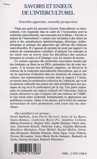 Une invitation à des mises au point et des actualisations épistémologique, théorique méthodologique et pratique des approches qui relèvent des relations interculturelles. Ce volume regroupe des recherches innovantes sur les questions d"identités, de représentations sociales dans le rapport à l'Autre ou dans la construction collective de l'éthnique et sur les aspects culturels de l'éducation.