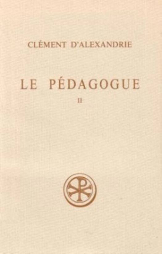 Le vaste traité de vie chrétienne que, d'une façon très consciente, Clément d'Alexandrie a voulu intituler « Le Pédagogue » est divisé en trois livres. Le premier jette les fondements. En fait, il n'y en a qu'un : le « Logos » dans notre chair, Jésus, qui seul peut guérir l'homme de son inhumanité et lui apprendre à honorer jusqu'au bout sa dignité et sa noblesse. Sous sa direction, l'existence chrétienne accomplit pleinement la morale que les sages de la Grèce avaient enseignée. Les livres II et III, se coulant sans raideur dans ce que pouvait être la journée d'un habitant d'une grande ville hellénistique, exposent tous les aspects d'une conduite juste, saine, belle, évangélique. La table et le lit sont particulièrement l'objet du livre II. Clément écrit avec verdeur, et non sans grâce. Clément est exigeant, mais sans rien d'étriqué. Un souffle de jeunesse et d'humanisme conquérant soulève cette diatribe familière qui, à propos de tous les détails de la vie, reste une hymne au Pédagogue.