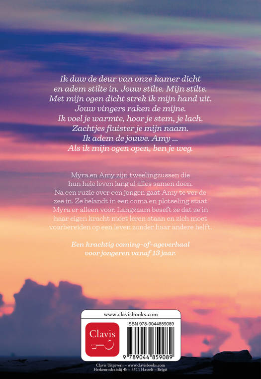 Ik duw de deur van onze kamer dicht en adem stilte in. Jouw stilte. Mijn stilte. Met mijn ogen dicht strek ik mijn hand uit. Jouw vingers raken de mijne. Ik voel je warmte, hoor je stem, je lach. Zachtjes fluister je mijn naam. Ik adem de jouwe. Amy … Als ik mijn ogen open, ben je weg.