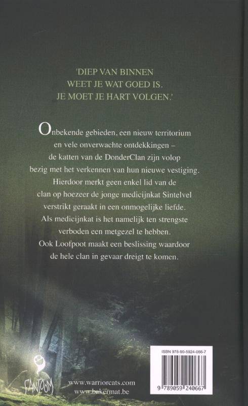 Onbekende gebieden, een nieuw territorium en vele onverwachte ontdekkingen - de katten van de DonderClan zijn volop bezig met het verkennen van hun nieuwe vestiging. Hierdoor merkt geen enkel lid van de Clan op hoezeer de jonge medicijnkat Sintelvel verstrikt geraakt in een onmogelijke liefde. Ook Loofpoot maakt een beslissing waardoor de hele clan in gevaar dreigt te komen…