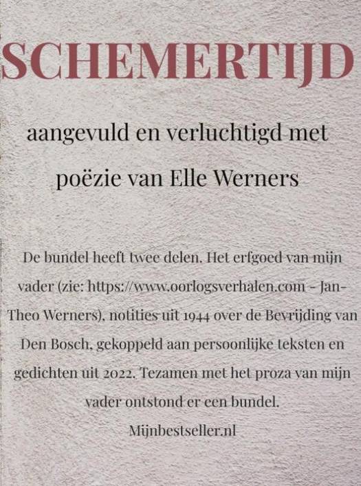 De bundel heeft twee delen. Het erfgoed van mijn vader (zie: https://www.oorlogsverhalen.com - Jan-Theo Werners), notities uit 1944 over de Bevrijding van Den Bosch, gekoppeld aan persoonlijke teksten en gedichten uit 2022. Tezamen met het proza van mijn vader ontstond er een bundel.