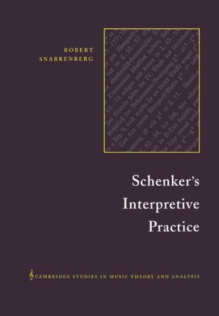Schenker's Interpretive Practice is the first comprehensive study of this century's most influential music theorist, Heinrich Schenker. Since the 1960s, American theorists and musicologists have focused almost exclusively on analytical methods distilled from Schenker's writings. Breaking from that tradition, Robert Snarrenberg returns to Schenker's texts and to the humanist roots of his approach, situating Schenker's work in the broader context of his desire to portray the richness and particularity of musical experience. Snarrenberg concentrates on four aims that Schenker hoped to achieve: to present a theoretical account of musical effects encountered in European music of the eighteenth and nineteenth centuries, to represent the mindset shared among composers of that music, to convey the expressive interaction of musical effects in individual artwork, and to promote continued creative and re-creative participation in the musical tradition. Author recipient of the 1998 Young Scholar Award from the Society of Music Theory.