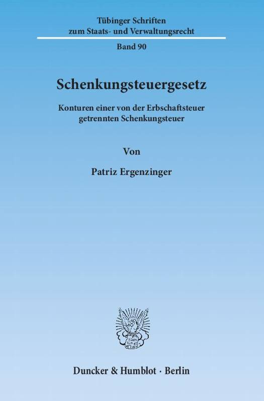 Die Schenkungsteuer wird in der wissenschaftlichen Auseinandersetzung meist ohne nähere Begründung als bloße Ergänzung der Erbschaftsteuer betrachtet. Tatsächlich geht die Schenkungsteuer über eine bloße Ergänzungsfunktion hinaus. Sie ist eine eigenständige Steuer, die einer eigenständigen Rechtfertigung bedarf und in einem eigenen Normenkomplex geregelt werden sollte. Hierfür werden die Besonderheiten der Schenkungsteuer in Abgrenzung zur Erbschaftsteuer untersucht. Dies beginnt bei einer eigenständigen Rechtfertigung der Schenkungsteuer aus dem Leistungsfähigkeitsprinzip.