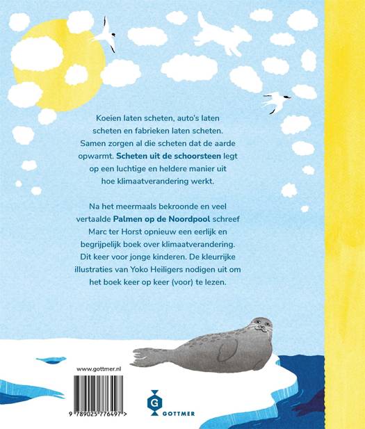 In 'Scheten uit de schoorsteen' legt Marc ter Horst, die inmiddels een autoriteit is op het gebied van de kindernon-fictie, op een luchtige en toegankelijke toon de klimaatverandering uit. Zijn toon is humoristisch en hoopvol, maar zonder de feiten te bagatelliseren. Daarmee is 'Scheten uit de schoorsteen' een verhelderend verhaal over de problemen én oplossingen voor ons klimaat, voor kinderen vanaf 5 jaar.