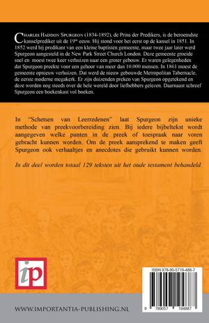 In "Schetsen van Leerredenen" laat Spurgeon zijn unieke methode van preekvoorbereiding zien. Bij iedere bijbeltekst wordt aangegeven welke punten in de preek of toespraak naar voren gebracht kunnen worden. Om de preek aansprekend te maken geeft Spurgeon ook verhaaltjes en anecdotes die gebruikt kunnen worden.