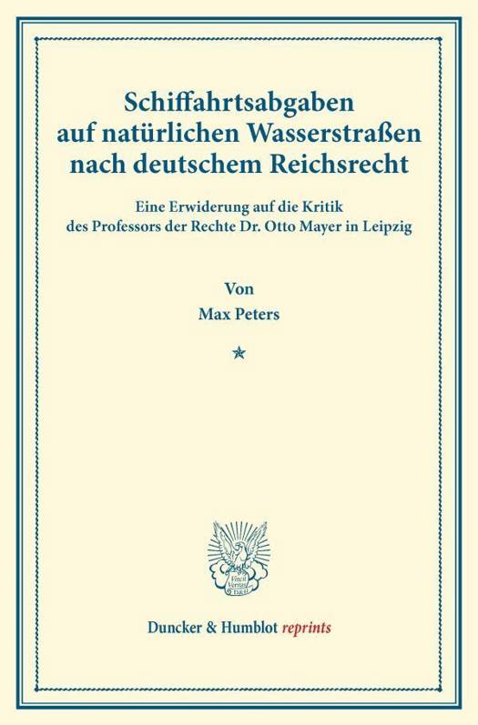 Schiffahrtsabgaben Auf Naturlichen Wasserstrassen Nach Deutschem Reichsrecht