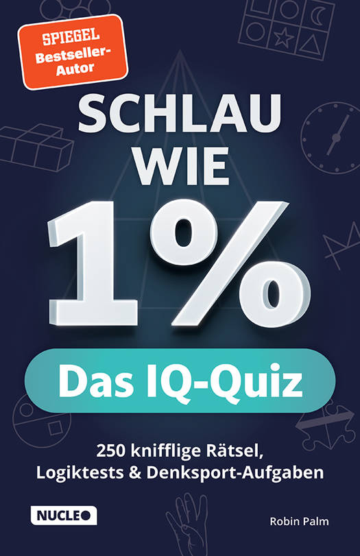 Quiz trifft auf GehirnjoggingTeste in diesem spannenden Quiz dein Logikgeschick und deine Auffassungsgabe: Bist du so schlau wie 1 %?Jeder kann mitratenBei diesem Quiz kann jeder mitspielen, denn es geht nicht um Wissen - hier müssen Rätsel geknackt werden.Schlauer als der Rest?Stelle dich allein oder mit deiner Familie und Freunden den Aufgaben, bei denen auch mal um die Ecke gedacht werden muss.Highlights:- 250 Rätsel- und Denksportaufgaben- Viele verschiedene Kategorien und Rätselarten- Löse die Fragen zwischendurch allein oder spiele das Quiz in der Gruppe- Erfahre deinen Schlauheits-Wert: Wie viel schlauer als die anderen bist du?Das Rätselbuch, das auch ein Spiel istLöse zahlreiche Rätsel und Logikaufgaben - allein wie bei einem Rätselbuch oder zusammen als Spiel, um herauszufinden, wer von euch schlauer ist. Jetzt holen und losknobeln!