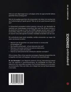 Heb je je ooit afgevraagd wat er schuilgaat achter de ogenschijnlijk tijdloze gezichten die je vandaag ziet? Wat als de jeugdige gezichten die je bewondert niet alleen het resultaat zijn van huidverzorging of goede genen? Wat als ze een goed bewaard geheim zijn? In Schoonheid ontmaskerd onthult plastisch chirurg Dr. Jan Vermeylen de waarheid over hedendaagse schoonheid. Met meer dan 35 jaar ervaring in de plastische chirurgie en meer dan 23.000 ingrepen op zijn naam, onthult hij hoe fillers, filters en snelle oplossingen vaak meer kwaad dan goed doen – en waarom natuurlijk ogende resultaten moeilijker te bereiken zijn dan ooit. Inclusief "De Beauty Piramide". Dit onthullende boek biedt duidelijke, eerlijke antwoorden op vragen die velen niet durven te stellen: