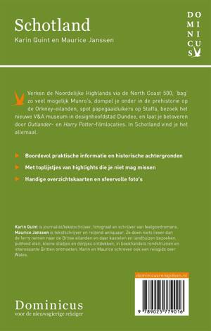 Ontdek Schotland op vakantie met deze Dominicus-reisgids en trek de woeste en ongerepte Schotse hooglanden in, verken de prachtige natuur van de eilanden aan de noord- en westkust of ga op stedentrip naar Glasgow, de grootste stad van Schotland, of bezoek Edinburgh - een sprookjesachtig oord met internationale allure. In deze reisgids vind je de mooiste wandeltochten om de natuurgebieden te ontdekken waarom Schotland bekendstaat. Ontdek de mooiste kastelen en historische plaatsjes, bezoek prachtige kathedralen en kerken en maak kennis met de hartelijke bevolking. Beleef de ultieme vakantie in Schotland, een land dat zowel per auto als vliegtuig bereikbaar is vanuit Nederland of België. Deze reisgids staat boordevol praktische informatie, historische achtergronden, handige overzichtskaarten, sfeervolle foto's en uitgebreide culturele achtergrondinformatie, is altijd up-to-date en geschreven door Nederlandstalige experts.