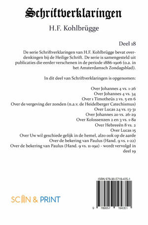 De serie Schriftverklaringen van H.F. Kohlbrügge bevat overdenkingen bij de Heilige Schrift. De serie is samengesteld uit publicaties die eerder verschenen in de periode 1886-1906 (o.a. in het Amsterdamsch Zondagsblad).
