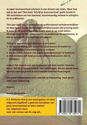 Dit boek helpt je niet alleen fouten en problemen te voorkomen, je zult er ook ideeën en inspiratie uit opdoen. 'Schrijf je levensverhaal' bestaat uit drie delen: 1. De voorbereiding; om vooraf de juiste keuzes te maken en de beschikbare informatie goed te ordenen. 2. De structuur; helpt je een goede verhaalstructuur te hanteren. 3. Het schrijven zelf helpt je jouw verhaal boeiend en vlot te schrijven. Je leert het meeste van het toepassen van deze kennis. Daarom bevat ‘Schrijf je levensverhaal’ veel oefeningen, die een goede basis vormen voordat je met je uiteindelijke levensverhaal begint. Een goed levensverhaal kost wat tijd en inspanning, maar geeft altijd veel voldoening. Succes! Renée Merkestijn
