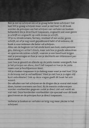 Ben je dol op schrijven en wil je graag beter leren schrijven? Dat kan! Wil je graag schrijven maar weet je niet hoe? In dit boek worden de principes van het schrijven van verhalen en boeken behandeld die je direct kunt toepassen, ongeacht wat voor genre je schrijft en ongeacht op welk niveau je schrijft.
