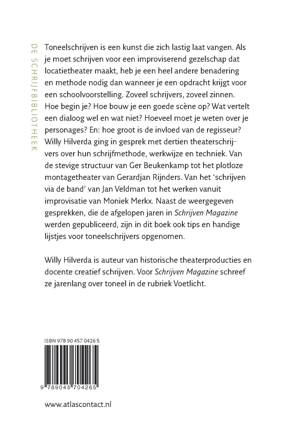 Toneelschrijven is een kunst die zich lastig laat vangen. Als je moet schrijven voor een improviserend gezelschap dat locatietheater maakt, heb je een heel andere benadering en methode nodig dan wanneer je een opdracht krijgt voor een schoolvoorstelling. Zoveel schrijvers, zoveel zinnen. Hoe begin je? Hoe bouw je een goede scène op? Wat vertelt een dialoog wel en niet? Hoeveel moet je weten over je personages? En: hoe groot is de invloed van de regisseur? Journalist, schrijver en schrijfdocent Willy Hilverda ging in gesprek met dertien theaterschrijvers over hun schrijfmethode, werkwijze en techniek. Van de stevige structuur van Ger Beukenkamp tot het plotloze montagetheater van Gerardjan Rijnders. Van het schrijven via de band van Jan Veldman tot het werken vanuit improvisatie van Moniek Merkx. Naast de weergegeven gesprekken, die de afgelopen jaren in Schrijven Magazine werden gepubliceerd, zijn in dit boek ook tips en handige lijstjes voor toneelschrijvers opgenomen.