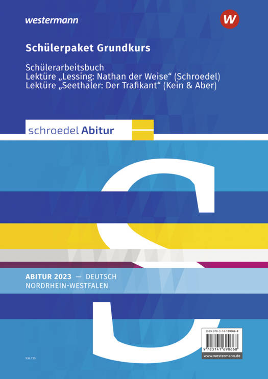 Das Grundkurspaket für die Qualifikationsphase enthält neben dem Schülerarbeitsbuch beigelegt die Schroedel Lektüre "Nathan der Weise" und die Taschenbuchausgabe Robert Seethaler: Der Trafikant aus dem Kein & Aber Verlag. Weitere Texte sind in das Schülerarbeitsbuch integriert.