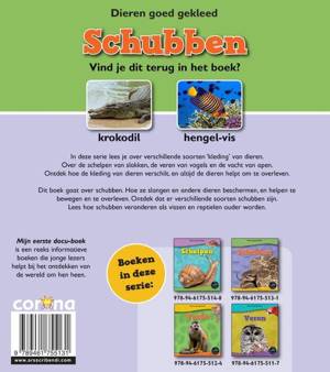 Dit boek gaat over schubben. Hoe ze slangen en andere dieren beschermen, en helpen te bewegen en te overleven. Ontdek dat er verschillende soorten schubben zijn. Lees hoe schubben veranderen als vissen en reptielen ouder worden.