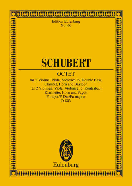 With more than 1,200 titles from the orchestral and choral repertoire, from chamber music and musical theatre, Edition Eulenburg is the world's largest series of scores, covering large part of music history from the Baroque to the Classical era and looking back on a long tradition. Instrumentation: 2 violins, viola, cello, double bass, clarinet, horn and bassoon op. 166 D 803