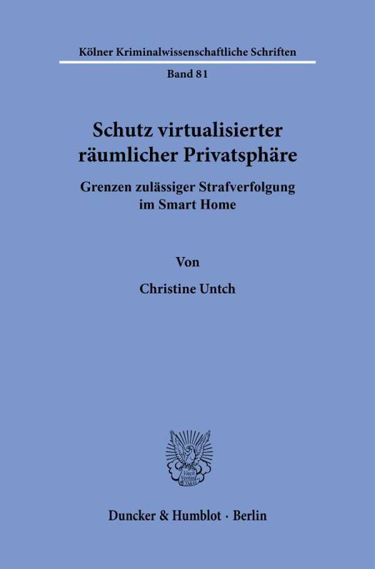 English summary: Protecting Virtualised Spatial Privacy. Limitations to Prosecution in the Smart Home Although technological progress is constantly leading to new investigative possibilities, the Code of Criminal Procedure contains limited provisions on how to deal with these new ways of gaining knowledge. It is often uncertain which data may be accessed from which location based on which authorisation. Using the example of Smart Home technology, the author examines the existing criminal procedural data access system from an IT forensic, constitutional and criminal procedural perspective. German description: Obwohl die Datenerhebung und -verwertung immer bedeutsamer wird und der unaufhaltsame technische Fortschritt bestandig zu neuen Ermittlungsmoglichkeiten fuhrt, finden sich in der deutschen Strafprozessordnung nur vereinzelt Regelungen dazu, wie mit diesen neuen Erkenntnismoglichkeiten umzugehen ist. Nicht selten ist unklar, mit welcher Befugnis auf welche Daten von welchem Ort aus zugegriffen werden darf. Am Beispiel der Smart Home-Technologie untersucht die Autorin das bestehende strafprozessuale Datenzugriffssystem aus IT-forensischer, verfassungsrechtlicher und strafprozessualer Perspektive. Sie kommt zu dem Ergebnis, dass zur Gewahrleistung des verfassungsrechtlich gebotenen Schutzniveaus eine umfassende Reform der strafprozessualen Datenzugriffsbefugnisse erforderlich ist. Um der Bedeutung der raumlichen Privatsphare auch im Zeitalter des Smart Home gerecht zu werden, pladiert sie fur die Schaffung eines angemessenen Schutzes der virtualisierten raumlichen Privatsphare.