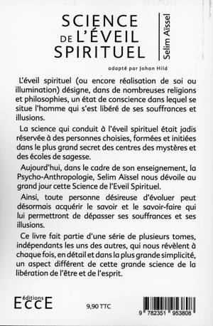 L’Eveil Spirituel, (ou encore réalisation de soi ou illumination), désigne dans de nombreuses religions et philosophies, un état de conscience, ou l’homme s’est totalement libéré de ses souffrances et illusions. La science qui conduit à l’Eveil était jadis réservée à des personnes choisies, formées et initiées dans le plus grand secret des écoles de mystères et de sagesse. Au début de XXe siècle, Georges Ivanovitch Gurdjieff commence l’introduction de ces connaissances auprès du grand public, sous l’appellation 4e Voie. Aujourd’hui, dans le cadre de son Enseignement la Psycho-Anthropologie, Selim Aïssel nous dévoile au grand jour, cette Science de l’Eveil. Aussi, toute personne désireuse d’évoluer, peut désormais acquérir le savoir et le savoir-faire, qui permet de dépasser ses souffrances et ses illusions. Ce livre fait partie d’une série de plusieurs tomes, indépendant les uns des autres, qui nous révèlent à chaque fois, en détail, et dans la plus grande simplicité, un aspect différent de cette grande science de la libération de l’être et de l’esprit.