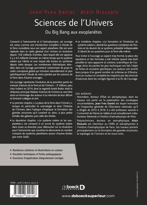 Consacré à l’astronomie et à l’astrophysique, cet ouvrage est conçu comme une introduction complète à l’étude de la Terre considérée sous son aspect planétaire. Elle est ainsi replacée dans le cadre général d’un Univers en évolution depuis 13,8 milliards d’années, dans lequel elle est apparue il y a 4,5 milliards d’années en même temps que le système solaire qui l’abrite et avec lequel elle évolue en symbiose depuis cette époque. Les nombreuses thématiques abordées dans cet ouvrage permettent notamment de poser le cadre conceptuel global qui introduit naturellement et plus spécifiquement l’étude de notre planète par les sciences de la Terre dans d’autres ouvrages.