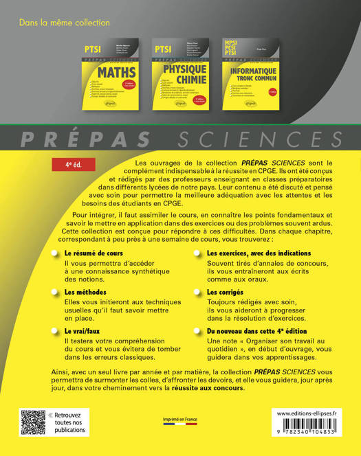 Avec un seul livre par année et par matière, la collection PRÉPAS SCIENCES vous guidera, jour après jour, dans votre cheminement vers la réussite aux concours.