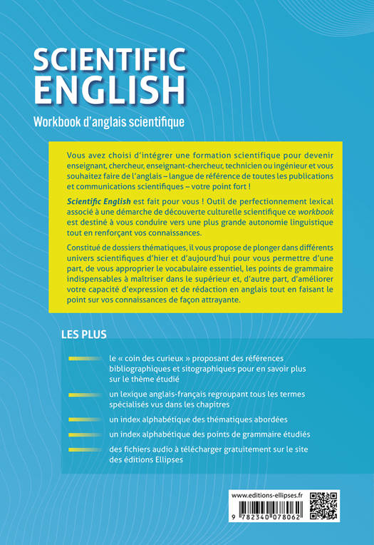 Composé de dossiers thématiques, il propose au lecteur de plonger dans l’univers scientifique d’hier et d’aujourd’hui pour à la fois s’approprier le vocabulaire essentiel, les points de grammaire indispensables à maîtriser dans le supérieur et enfin, faire le point ou perfectionner ses connaissances culturelles de façon attrayante.