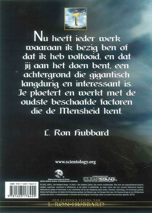 "Nu heeft ieder werk waaraan ik bezig ben of dat ik heb voltooid, en dat jij aan het doen bent, een achtergrond die gigantisch langdurig en interessant is.Je ploetert en werkt met de oudste beschaafde factoren die de Mensheid kent." - L. Ron Hubbard
