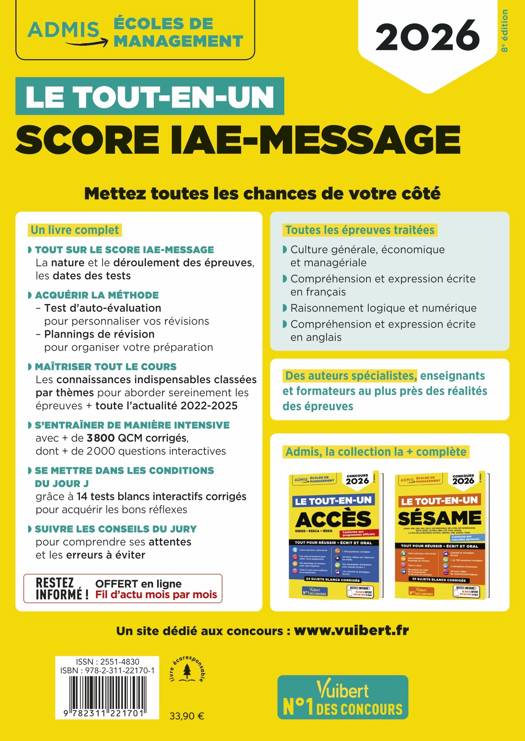 Réussissez votre préparation aux épreuves du Score IAE-Message grâce à notre livre Tout-en-un et ses 14 tests blancs interactifs !