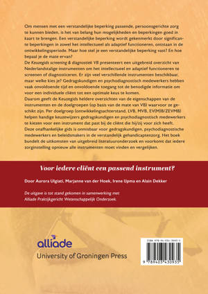 Daarom geeft de Keuzegids heldere overzichten van de eigenschappen van de instrumenten en de doelgroepen (op basis van de mate van VB) waarvoor ze geschikt zijn. Per doelgroep (ontwikkelingsachterstand, LVB, MVB, EV(M)B/ZEVMB) helpen handige keuzewijzers gedragskundigen en psychodiagnostisch medewerkers te kiezen voor een instrument dat past bij de cliënt die hij/zij voor zich heeft. Deze onafhankelijke gids is onmisbaar voor gedragskundigen, psychodiagnostische medewerkers en beleidsmakers in de verstandelijk gehandicaptenzorg. Het boek bundelt de uitkomsten van uitgebreid literatuuronderzoek en voorkomt dat iedere zorginstelling opnieuw alle instrumenten moet vinden en vergelijken.