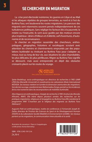 La crise post-électorale ivoirienne, les guerres en Libye et au Mali, ainsi que les attaques répétées de groupes terroristes, au nord et à l'est du Burkina Faso, ont bouleversé les routes migratoires. Les parcours des migrants sont néanmoins souvent pensés indépendamment de ces turbulences politiques. Sans négliger les facteurs liés à la pauvreté, la misère ou l'insécurité, ils sont aussi guidés par des moteurs encore plus impérieux : désir d'Ailleurs et d'altérité, soif d'aventures, d'autonomie et de reconnaissance.