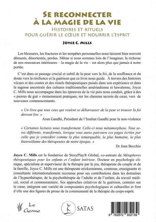 Les blessures, les fractures et les tempêtes personnelles nous laissent bien souvent démunis, désorientés, perdus. Même si nous sommes loin de l'imaginer, la richesse de nos ressources intérieures - la magie de la vie - est alors plus que jamais à notre portée. C'est dans ce passage crucial et subtil de la peur vers la foi, de la souffrance et du doute vers la résilience et la guérison que ce livre nous guide. A travers des histoires vécues et des contes et des rituels thérapeutiques puisés dans son expérience et dans la sagesse ancestrale des cultures traditionnelles amérindienne et hawaïenne, Joyce C. Mills nous accompagne dans les épreuves de la vie puis nous conduit, grâce à des "pierres de gué" éminemment pratiques, sur les chemins secrets du coeur, vers de nouveaux commencements.