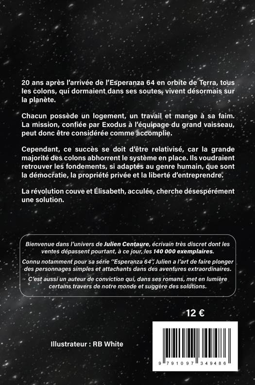 20 ans après l'arrivée de l'Esperanza 64 en orbite de Terra, tous les colons, qui dormaient dans ses soutes, vivent désormais sur la planète.
