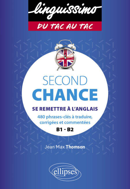 Que vous soyez étudiant ou bien déjà engagé dans la vie active, Second Chance vous propose une méthode simple et efficace pour rafraîchir vos souvenirs et pallier les lacunes grâce à 480 phrases à traduire en anglais :