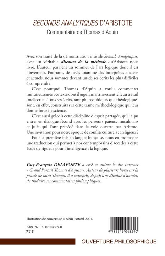 Avec son traité de la démonstration intitulé Seconds Analytiques, c'est un véritable discours de la méthode qu'Aristote nous livre. Il parvient au sommet de l'art logique dont il est l'inventeur. Pourtant, de l'avis unanime des interprètes anciens et actuels, nous sommes devant un de ses écrits les plus difficiles à comprendre. C'est pourquoi Thomas d'Aquin a voulu commenter minutieusement ce texte dont il juge la maîtrise essentielle au travail intellectuel. Pour la première fois en langue française, nous en proposons une traduction qui permet d'accéder à cette école de rigueur : la logique.