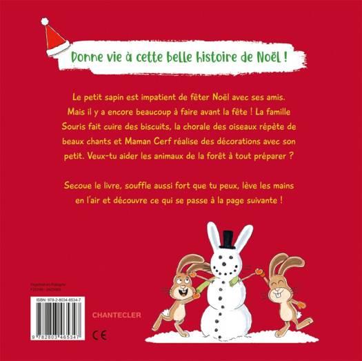 Le petit sapin de cette histoire interactive est impatient de fêter Noël avec ses amis. Mais il y a encore beaucoup à faire avant la fête ! Voulez-vous aider la famille Souris à cuire des biscuits, la chorale des oiseaux à répéter de beaux chants et Maman Cerf à réaliser des décorations avec son petit ? Le livre invite les enfants à faire des actions amusantes : secouer le livre, lever les mains en l'air, montrer du doigt des vêtements… et à découvrir ce qui se passe à la page suivante. Un livre interactif rempli de jolies surprises !