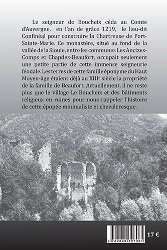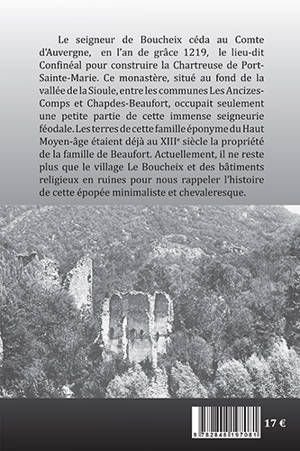 Le seigneur de Boucheix céda au Comte d’Auvergne, en l’an de grâce 1219, le lieu-dit Confinéal pour construire la Chartreuse de Port-Sainte-Marie. Ce monastère, situé au fond de la vallée de la Sioule, entre les communes Les Ancizes-Comps et Chapdes-Beaufort, occupait seulement une petite partie de cette immense seigneurie féodale. Les terres de cette famille éponyme du Haut Moyen-âge étaient déjà au XIIIe siècle la propriété de la famille de Beaufort. Actuellement, il ne reste plus que le village Le Boucheix et des bâtiments religieux en ruines pour nous rappeler l’histoire de cette épopée minimaliste et chevaleresque.