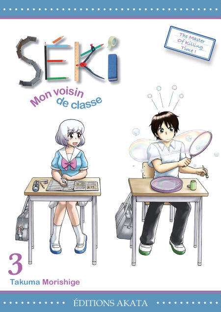Rumi est une élève studieuse et sérieuse... Mais elle a un GROS problème ! Son problème, c'est Séki ! C'est qui ? Ben, Séki, son voisin de classe ! Cet énergunème aussi stoïque que génial passe son temps à... tuer le temps ! Parce que les cours, c'est vraiment pas son truc. Alors il préfère bricoler, s'amuser, découper, inventer... faire tout ce qui lui passe par la tête sur son bureau, qui se transforme alors en véritable table d'expérimentations ! Difficile alors, pour la pauvre lycéenne, de rester concentrée, alors que son voisin s'agite dans tous les sens, sans jamais se faire prendre par les professeurs. Le pire dans tout ça, c'est que quand l'imagination de Séki déborde "un peu" trop, c'est toujours sur elle que ça retombe... pour le plus grand plaisir des lecteurs !!