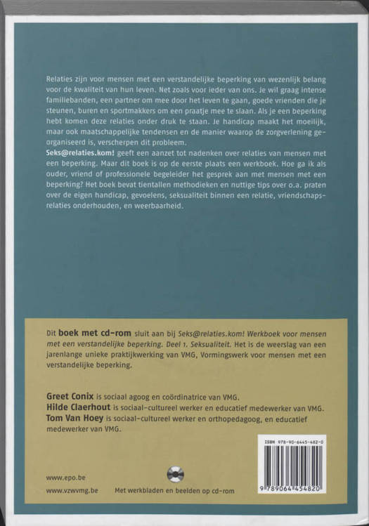Dit boek met cd-rom sluit aan bij Seks@relaties.kom! Werkboek voor mensen met een verstandelijke beperking - Deel 1: Seksualiteit. Het is de weerslag van een jarenlange unieke praktijk van VMG, Vormingswerk voor mensen met een verstandelijke beperking.