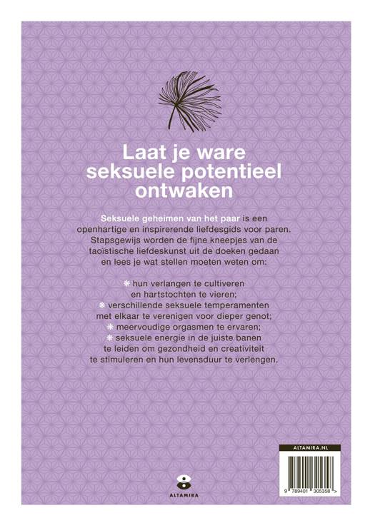 Seksuele geheimen van het paar' is een openhartige liefdesgids voor paren. Stapsgewijs worden de fijne kneepjes van de taoïstische liefdeskunst uit de doeken gedaan. In dit boek leren paren hun verlangens te cultiveren en hartstochten te vieren aan de hand van het taoïsme. Samen leren ze de creativiteit op te zoeken om hun seksuele energie te laten stromen. Ook ontdekken ze hoe ze dieper genot kunnen ervaren door seksuele temparementen te verenigen. Hierdoor leren stellen hoe zij hun seksuele energie in banen kunnen leiden om meerdere orgasmen te ervaren. Zo wordt het genot voor beide partijen dieper en intenser. De taoïstische liefdeskunst is hier uitermate geschikt voor. 'Seksuele geheimen van het paar' laat je ware seksuele potentieel ontwaken.