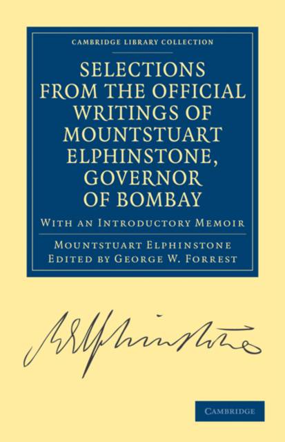 The historian George W. Forrest (1846-1926) pays tribute to the legacy of Mountstuart Elphinstone (1779-1859) by bringing his writings together in this 1884 publication, which begins with a account of Elphinstone's life and the historical events connected with his career, providing important background information and context for the reader. Forrest provides a fascinating insight into Elphinstone's opinions on some of the leading questions connected with the government of British India. The statesman played a pivotal role in founding the system of state education in India, strongly supporting native education and the local administration of laws. As Forrest describes, he brought 'a liberal and highly cultivated mind' to discussions of Indian problems, and he saw the British task in India as equipping Indians for self-government as quickly as possible. This collection documents his challenges and achievements, and is an important historical record of a turning point in Indian history.