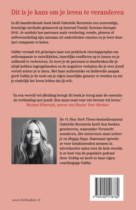In dit baanbrekende boek biedt Gabrielle Bernstein een eenvoudige, krachtige methode gebaseerd op Internal Family Systems-therapie (IFS). Je ontdekt hoe patronen zoals verslaving, woede, pleasen of zelfveroordeling zijn ontstaan uit onderdrukte emoties en je leert deze met compassie te helen.