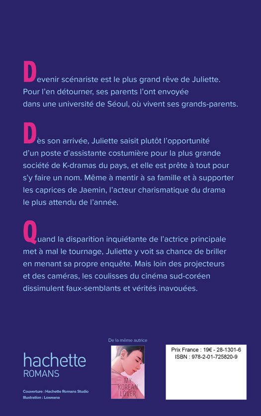Juliette, qui ambitionne de devenir scénariste, travaille dans la plus grande société de production de dramas coréens, à Séoul. Mais elle n’y occupe qu’un simple poste d’accessoiriste… Qu’à cela ne tienne, Juliette croit dur en la réalisation de son rêve. Et ce n’est certainement pas Jaemin, un des acteurs phares du dernier drama en cours de réalisation, qui se fait une joie de se moquer de ses aspirations trop romantiques à son goût, qui la fera renoncer. Lorsque la disparition inquiétante d’une comédienne met à mal le tournage, Juliette voit là sa chance de briller auprès des plus grands noms du milieu en menant sa propre enquête. Loin des projecteurs et des caméras qu’elle adule, les coulisses obscures regorgent de faux-semblants et de vérités inavouées.