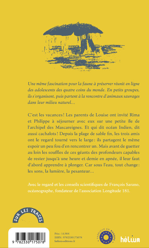 C'est les vacances ! Les parents de Louise ont invité Rima et Philippe à séjourner avec eux sur une petite île de l'archipel des Mascareignes. Et qui dit océan Indien, dit aussi cachalots ! Depuis la plage de sable fin, les trois amis ont le regard tourné vers le large : ils partagent le même espoir un peu fou d'en rencontrer un. Mais avant de guetter au loin les souffles de ces géants des profondeurs capables de rester jusqu'à une heure et demie en apnée, il leur faut d'abord apprendre à plonger. Car sous l'eau, tout change : les sons, la lumière, la pesanteur...