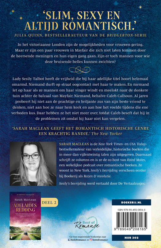 Londen, 1836. Lady Sesily Talbot heeft de vrijheid die bij haar adellijke titel hoort helemaal omarmd. Niemand durft op straat oogcontact met haar te maken. En niemand let op haar als ze mannen om haar vinger windt en meelokt naar de donkere tuin achter de balzaal van Mayfair. Niemand, behalve Caleb Calhoun. Al jaren probeert hij niet aan de prachtige en briljante zus van zijn beste vriend te denken, niet aan hoe ze naar hem keek en aan hoe het voelde tijdens die ene verboden kus. Daar hebben ze het niet meer over, totdat Caleb beseft dat hij in de problemen zit omdat hij haar niet kan vergeten.