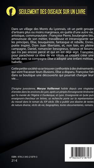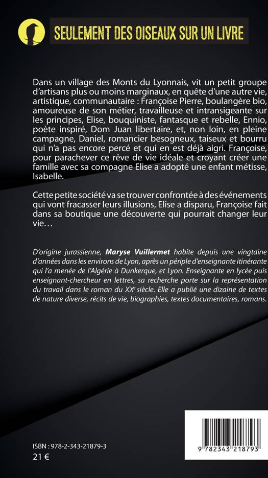 Dans un village des Monts du Lyonnais, vit un petit groupe d'artisans plus ou moins marginaux, en quête d'une autre vie : Françoise, boulangère bio, Elise, bouquiniste, Ennio, poète inspiré, et, non loin en pleine campagne, Daniel, romancier besogneux. Françoise, pour parachever ce rêve de vie idéale et croyant créer une famille avec sa compagne Elise a adopté une enfant, Isabelle. Cette petite société va se trouver confrontée à des événements qui vont fracasser leurs illusions, Elise a disparu, Françoise fait dans sa boutique une découverte qui pourrait changer leur vie...