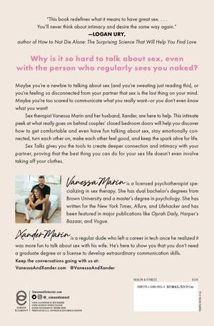 The definitive guide to creating the sex life of your wildest dreams--just by talking about it!--from sexpert couple Vanessa and Xander Marin. INSTANT NEW YORK TIMES BESTSELLER AARP.org Books to Improve Your Love Life Why is it so hard to talk about sex, even with the person who regularly sees you naked?
