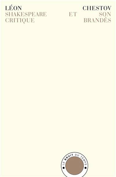 Shakespeare et son critique Brandès, publié en 1898, est le premier livre de Léon Chestov, et le seul qui n'avait jamais encore été traduit en français. Sous le feu de la colère que lui inspirèrent les écrits du critique rationaliste danois Georg Brandès consacrés à Shakespeare, alors que lui-même était encore bouleversé par la découverte des oeuvres du dramaturge anglais, Chestov donne sa propre lecture, passionnée, de Hamlet, Jules César, Le Roi Lear, Macbeth, Coriolan... Ce faisant, il esquisse déjà les grandes lignes de ce que sera son combat philosophique : aller au rebours de toute la tradition née du stoïcisme grec. La nécessité, la raison ne sont pas en mesure de répondre aux questions qui se posent à ceux qui, comme Job, ont été confrontés au véritable tragique de l'existence.