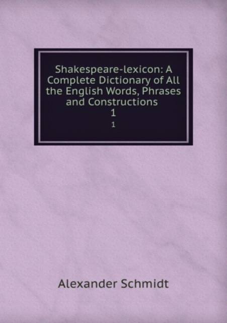 This book, "Shakespeare-lexicon. A Complete Dictionary of All the English Words, Phrases and Constructions Volume 1", by Alexander Schmidt, is a replication of a book originally published before 1902. It has been restored by human beings, page by page, so that you may enjoy it in a form as close to the original as possible. This book was created using print-on-demand technology. Thank you for supporting classic literature.